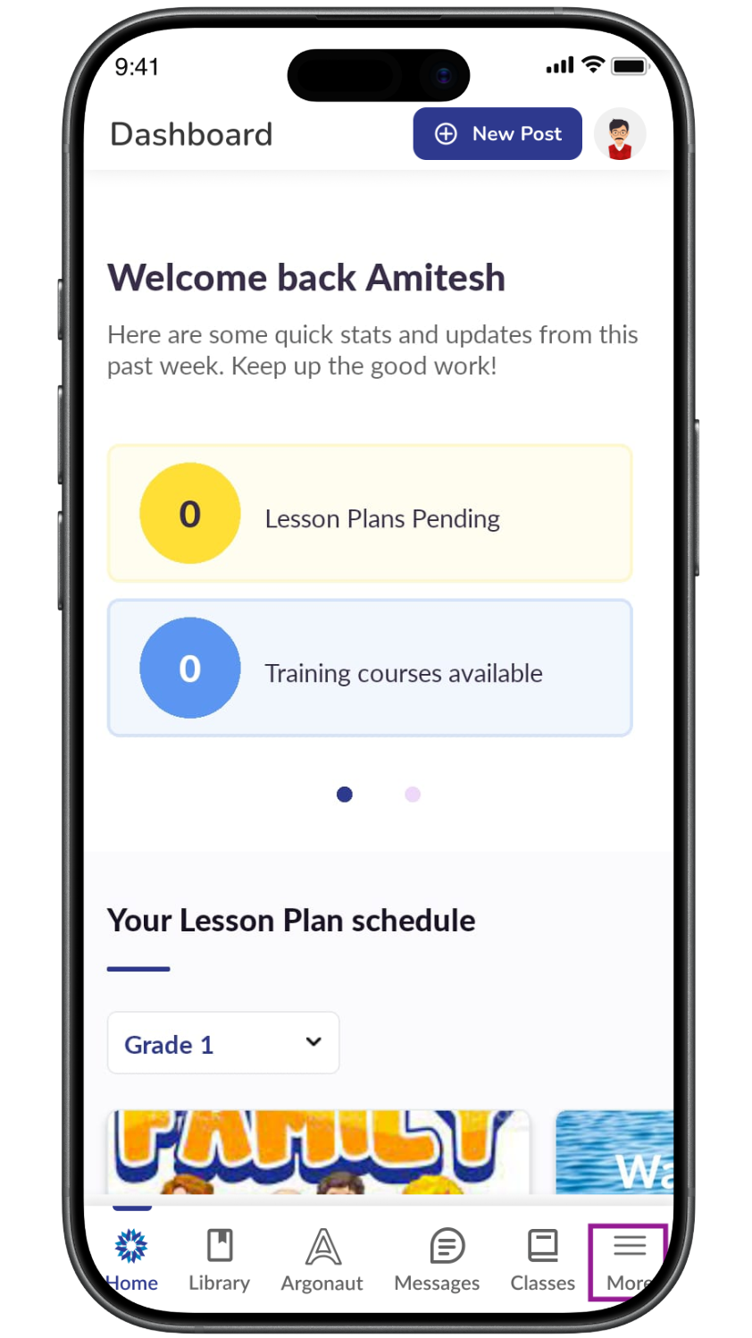 Log in to the LMS app using your staff credentials.