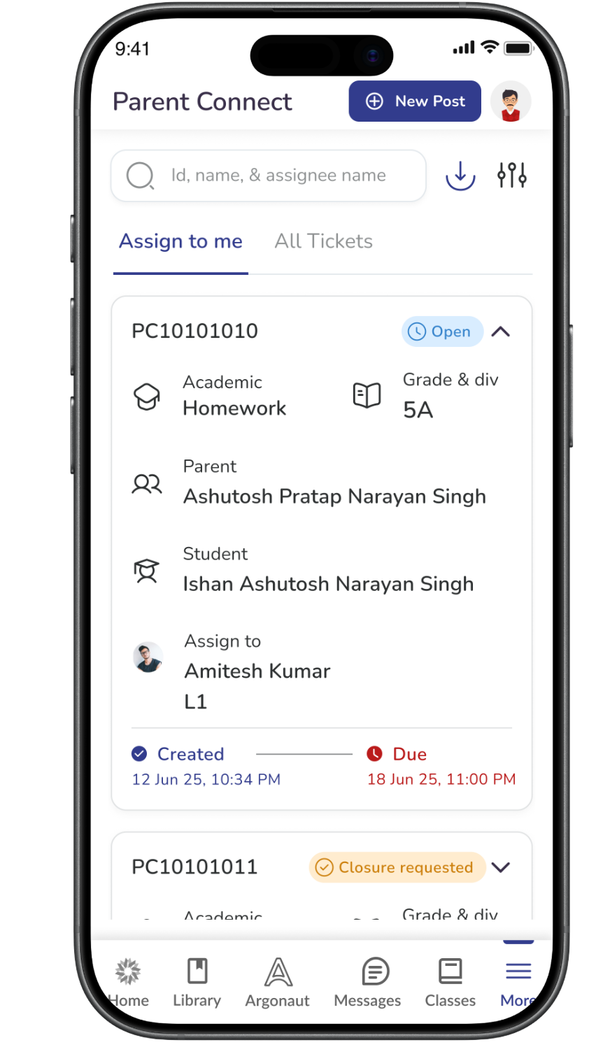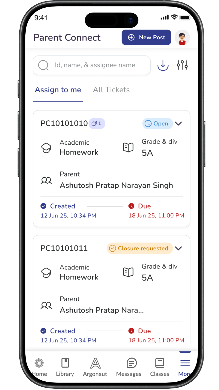 By default, Parent Connect opens on the Assign to me tab.